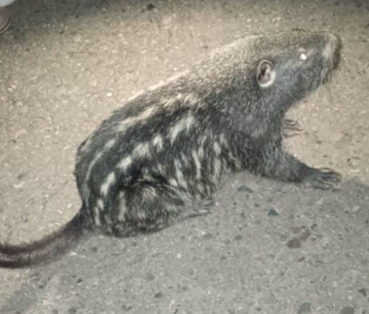 Un hermoso ejemplar de “jochi con cola” logró sobrevivir tras ser atropellado en el camino a Yucumo en el departamento de Beni. Su hallazgo se constituye en el primer registro vivo en Bolivia de este roedor grande. Foto. ANA/M Greminger.