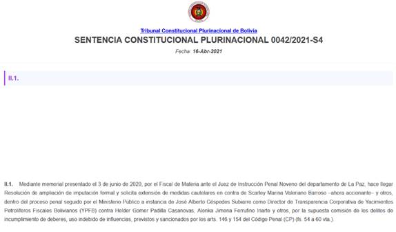 Del mismo modo, de acuerdo con información que consta en registros judiciales de acceso público, la mencionada profesional habría sido involucrada en procesos judiciales vinculados a presuntos hechos cometidos durante el ejercicio de funciones en YPFB. La verificación y el alcance de dichas causas dependen de la consulta directa de los expedientes y sistemas oficiales correspondientes, por lo que resulta imprescindible citar de manera expresa las fuentes documentales y el estado procesal de cada caso para una valoración objetiva.